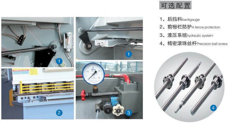 1.面板控制 2.高亮度LCD顯示器 3.后擋料控制 4.退讓功能 5.剪切角控制 6.剪切空隙控制 7.剪切行程控制 8.壓力控制 9.各軸可手動(dòng)移動(dòng) |